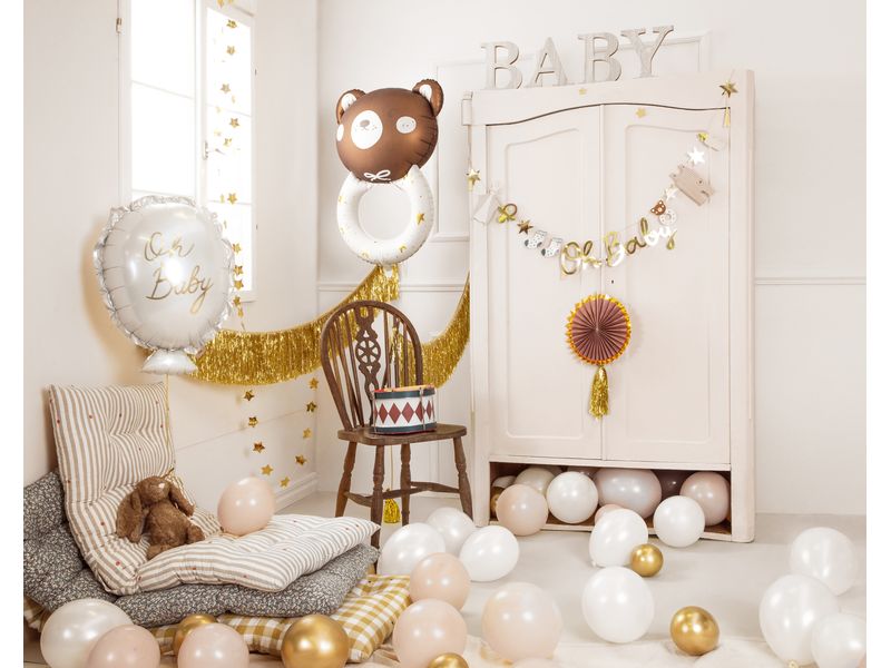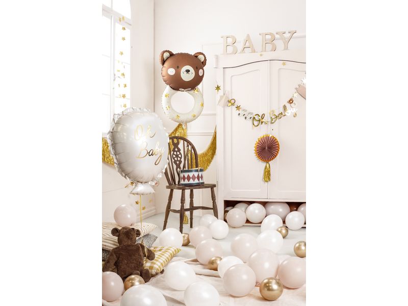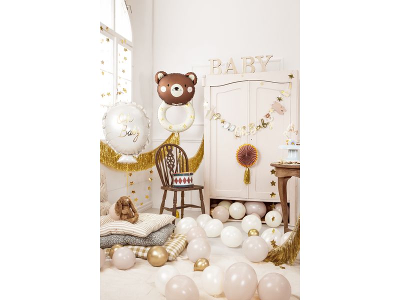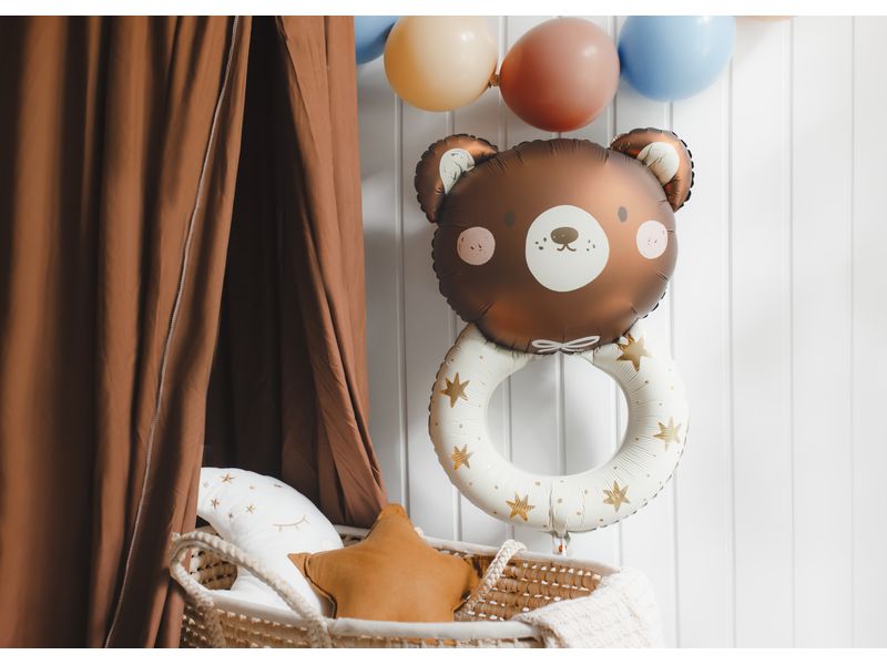 Balon foliowy z motywem „Grzechotka z misiem”. Balon jest wielkości ok. 61 cm x 88 cm. Idealne na dodatkową dekoracje na przyjęciach lub do sprawienia radości Swoim pociechom. Spraw, aby na ustach innych pojawił się uśmiech radości. Posiadamy w ofercie bardzo dużą ilość balonów z przeróżnymi motywami ekranizacji filmowych jak i bajkowych.