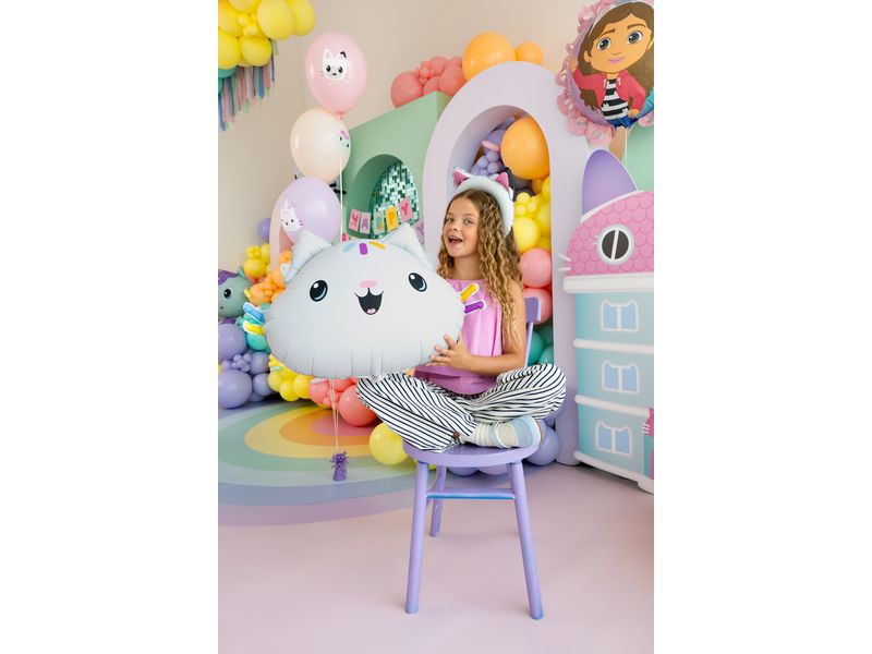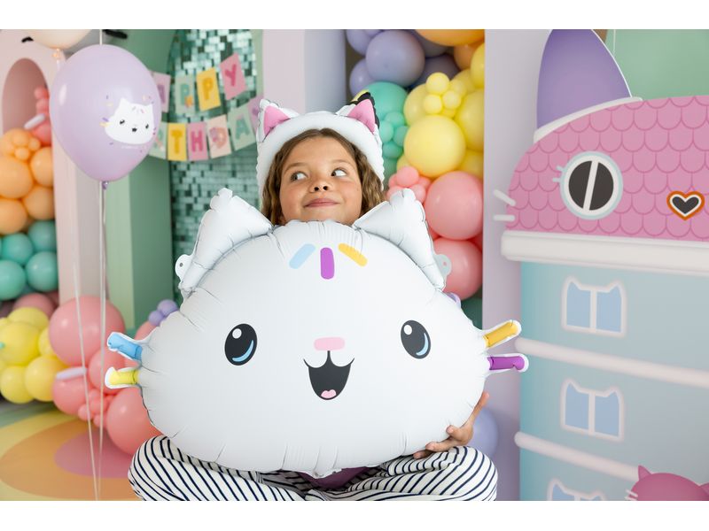 Balon foliowy z motywem „Koci Domek Gabi – Łakotek”. Balon jest wielkości ok. 67 cm x 43 cm. Idealne na dodatkową dekoracje na przyjęciach z okazji urodzin lub innych organizowanych przyjęć. Idealne do sesji zdjęciowej. Zaskocz swoje dziecko super niespodzianką na imprezie lub małych gości weselnych.