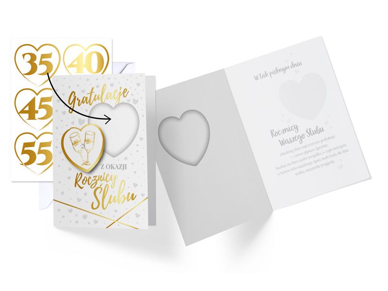 Kartki z serii DK, to kartki z ilustracjami, idealne na takie okazje jak urodziny o wymiarach B6 (16,6 cm x 11,7 cm po złożeniu) z motywem „Rocznica Ślubu III (wymienne)”, DK-811. W zestawie znajduje się także koperta.