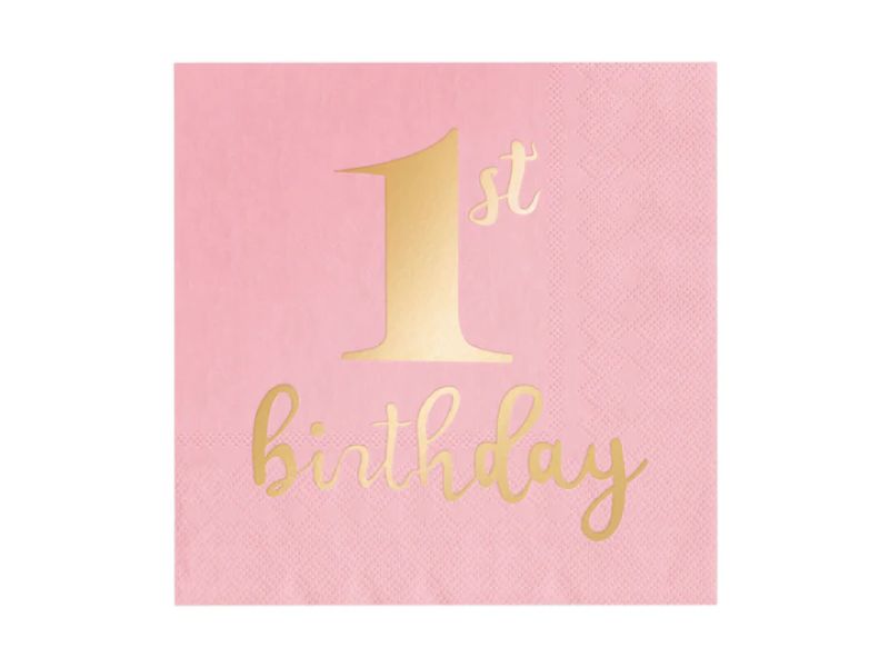 Serwetki z motywem „1st Birthday, różowe”. W opakowaniu znajduje się 10 sztuk serwetek o rozmiarze 33 cm x 33 cm. Idealnie nadają się na przyjęcia w domowym zaciszu (i nie tylko), aby dodać akcent elegancji. Dzięki tak pięknym serwetkom możesz uszczęśliwić najbliższą osobę. Nadruk na serwetkach jest wysokiej jakości tak więc nie zaznasz kiczu wśród zaproszonych gości. W innych kategoriach naszej sklepu można dobrać inne elementy pasujące do produktu, aby wszystko połączyć w całość.