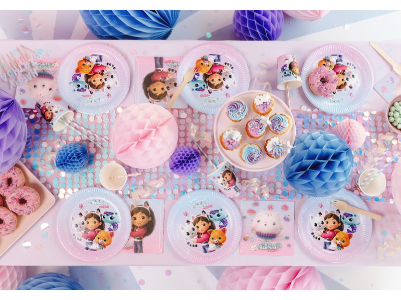 Serwetki z motywem „Koci Domek Gabi (Gabby’s Dollhouse)”. W opakowaniu znajduje się 20 sztuk serwetek o rozmiarze 33 cm x 33 cm. Idealnie nadają się na przyjęcia w domowym zaciszu (i nie tylko), aby dodać akcent elegancji. Dzięki tak pięknym serwetkom możesz uszczęśliwić najbliższą osobę. Nadruk na serwetkach jest wysokiej jakości tak więc nie zaznasz kiczu wśród zaproszonych gości. W innych kategoriach naszej sklepu można dobrać inne elementy pasujące do produktu, aby wszystko połączyć w całość.