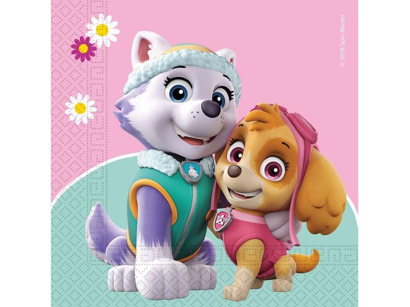 Serwetki z motywem Psiego Patrola – Skye i Everest. W opakowaniu znajduje się 20 sztuk serwetek o rozmiarze 33 cm x 33 cm. Idealnie nadają się na przyjęcia w domowym zaciszu, aby dodać akcent elegancji. Dzięki tak pięknym serwetkom możesz uszczęśliwić Swoje dziecko.