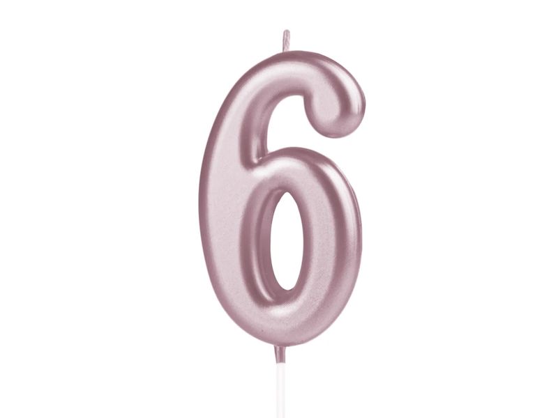 Świeczka urodzinowa w najmodniejszym kolorze różowego złota (rose gold) obowiązującym na każdej uroczystości. Warto zaznaczyć swój piękny wiek świeczką z cyfrą „6„. Świeczka różowo złoto posiada wysokość około 10 cm co pozwoli nam zaakcentować wiek na torcie podczas wykonywania pamiątkowych zdjęć.
