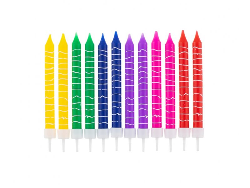Świeczki urodzinowe z motywem „Kredek” z podstawkami. Czy ktoś widział uroczystość z tortem bez świeczki? Musisz mieć to i zaakcentować swoją lub bliskiej osoby uroczystość. Świeczki posiadają wysokość całkowitą około 8 cm i w komplecie jest 12 szt. Zestaw świeczek jest w kolorach: żółty, zielony, niebieski, fioletowy, różowy i czerwony.