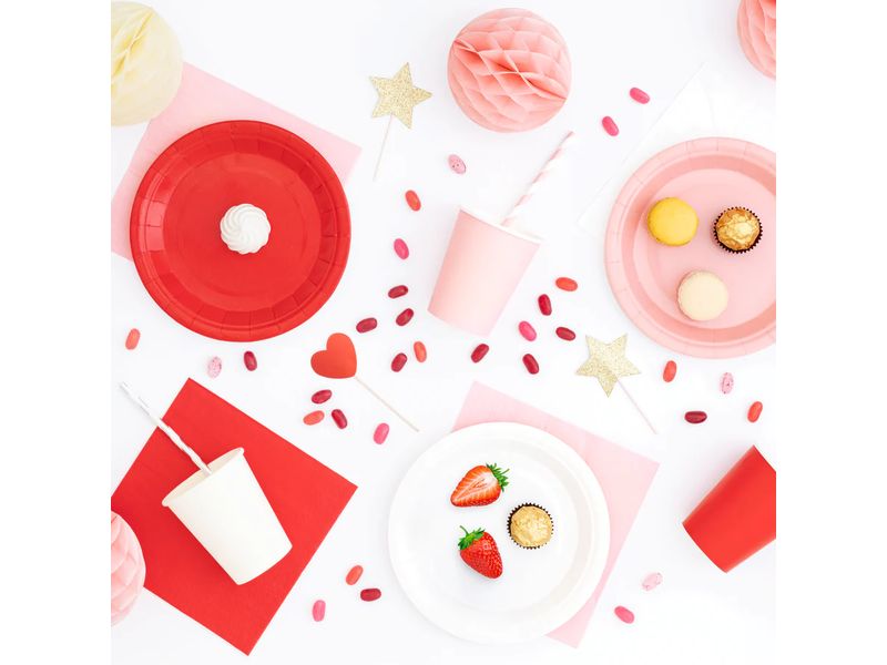 Talerzyki papierowe JEDNOKOLOROWE VP w kolorze czerwonym. W opakowaniu znajduje się 6 sztuk talerzyków o średnicy 18 cm. Idealnie nadają się na przyjęcia w domowym zaciszu, aby dodać akcent elegancji. Dzięki tak pięknym talerzykom możesz uszczęśliwić Swoich najbliższych w dniu ich święta lub imprezy okolicznościowej.