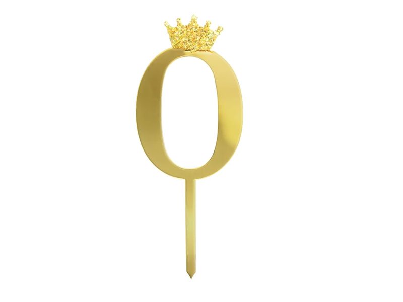 Piękny topper na tort wykonany z plastiku z cyfrą „0„. Dekoracja na ciasto jest o wysokości 11 cm i posiada kolor złoty widoczny na zdjęciu. Topper z motywem korony to ciekawy i oryginalny pomysł na ozdobienie tortu dla księcia jak i wyjątkowej księżniczki.