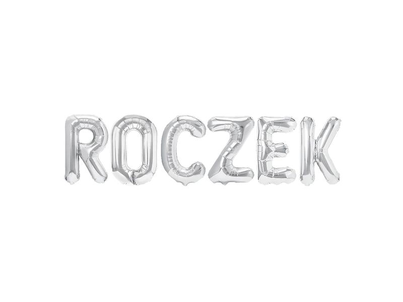 Zestaw balonów foliowych „napis ROCZEK” w kolorze srebrnym. Litery w zestawie mają wielkości aż 40 cm. Balony nadają się idealnie na dodatkową dekorację podczas imprezy urodzinowej na Roczek organizowanej w domowym zaciszu bądź w lokalu.