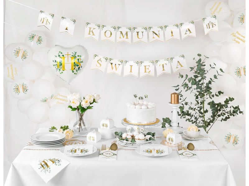 Zestaw balonów lateksowych na Komunię Świętą z motywem gołąbka. Składa się z 6 balonów w dwóch wzorach. Rozmiar balonów to 12 cali. Idealnie nadają się na uroczystości Komunijne. Do oferowanego motywu mamy także inne akcesoria.